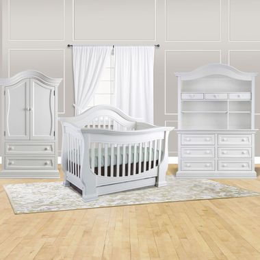 You are here: Home > Nursery Sets and Collections > White Crib Sets > Baby Appleseed Davenport Convertible Crib in White > Baby Appleseed Davenport 4 Piece Nursery Set - 3-in-1 Convertible Crib, Double Dresser with Hutch and Armoire in Pure White