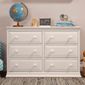 The Signature 6 Drawer Dresser is a stately storage piece with deep beveled borders and wide convex beveling on drawer fronts. It is four feet wide with six spacious drawers to organize diapering essentials when using this dresser as your diapering station. There is plenty of storage space for other things such as cute little onesies and crib beddings. DaVinci drawers are finished with child-safe knobs and metal locking glides.