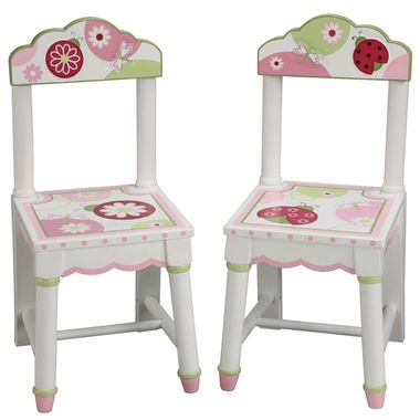 The Sweetie Pie Extra Chairs (Set of 2) by GuideCraft come in handy as extra seating or when pulled up to a table. The chairs are sturdy and well designed with a classic look. Painted over the top are adorable lady bugs looking for fun.