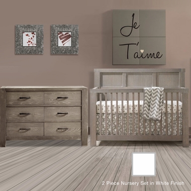 Natart Rustico 2 Piece Nursery Set - 4-in-1 Convertible Crib and Double Dresser in White - Click to enlarge