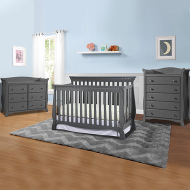 The Storkcraft Venetian 3 Piece Nursery Set - Convertible Crib, Avalon 5 Drawer Dresser and 6 Drawer Dresser in Gray allows you to experience nursery luxury at its very best. When you purchase this set, you get three stunning pieces that will help form the base of a truly elegant nursery.