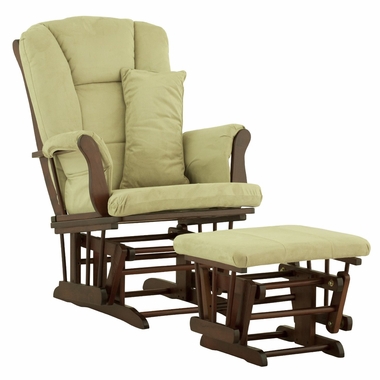 Storkcraft Tuscany Glider and Ottoman with Lumbar Pillow Finish and Sage Fabric